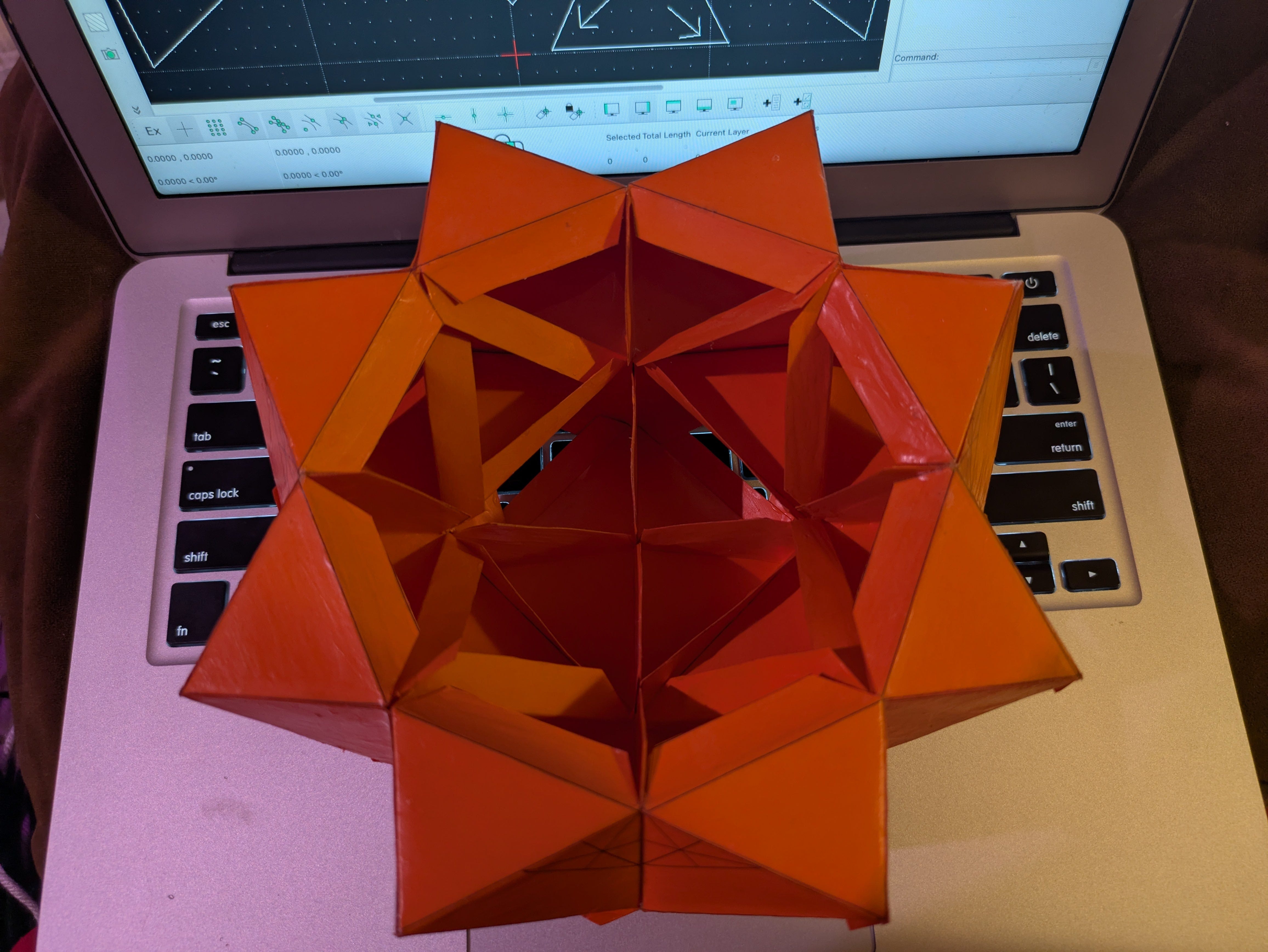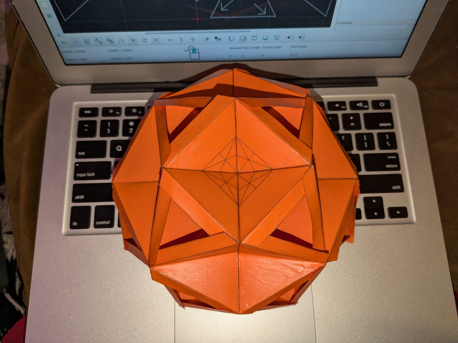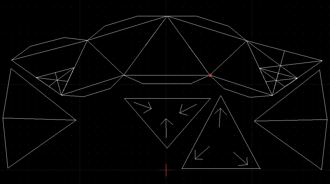 So, shapes. I’m currently exploring a dual shell, octahedron-based, geodesic dome, where the frequency of the inside face is one less the frequency of the outside face. What this means, essentially, is that for twelve of the same, specially-designed octahedrons, you can enclose space dome-style.