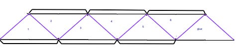 For the interested, the “glue” triangle needs to be glued into place over the number 1 triangle, with mountain folds along the purple lines.